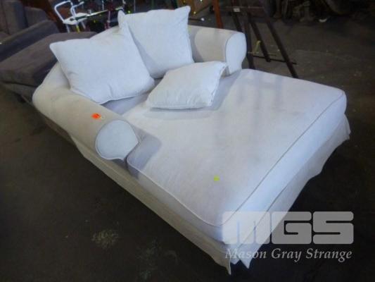 CHAISE STYLE FABRIC UPHOLSTERED SINGLE ARM CHAIR WITH CUSHIONS