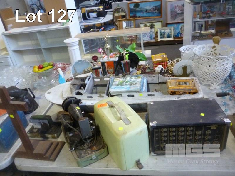 REMOTE CONTROL BOAT, YAMAHA INTEGRATED MIXER EM SERIES, VINTAGE SEWING MACHINES & TIMBER CROSS