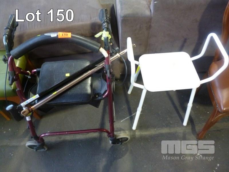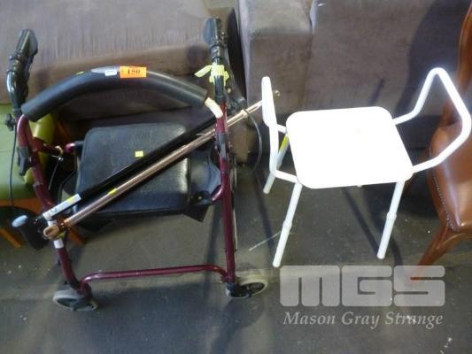 MOBILITY WALKER, SHOWER CHAIR & 2 x WALKING STICKS