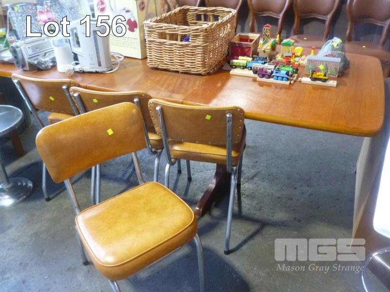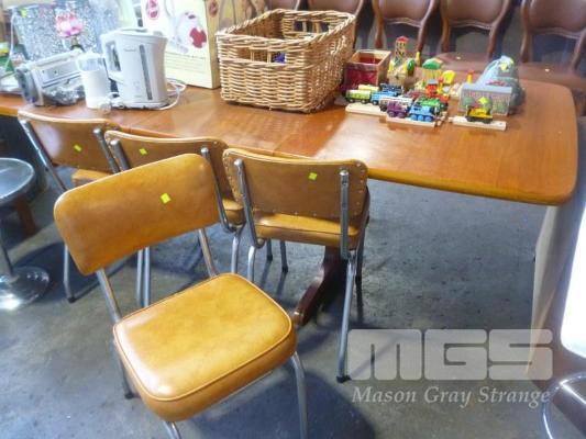 DINING SUITE INCLUDING EXTENSION TABLE & 4 x RETRO, VINYL CHAIRS, CHROME FRAME (NOT INCLUDING TABLE CONTENTS).