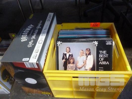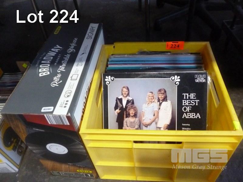 BROADWAY MARKET RETRO TURNTABLE BRIEFCASE & ASSORTED VINYL RECORDS INCLUDING OLIVIA NEWTON JOHN & ABBA