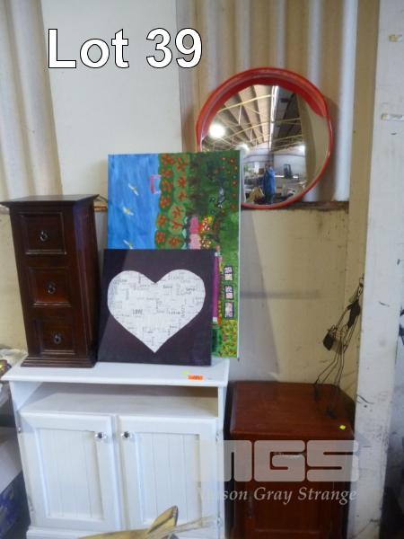 2 x STORAGE CABINETS, 3 DRAWER & CONVEX MIRROR