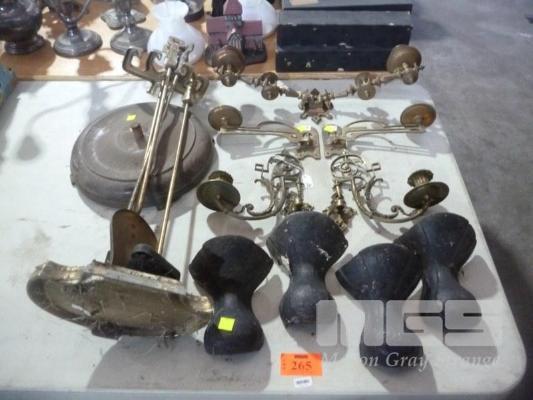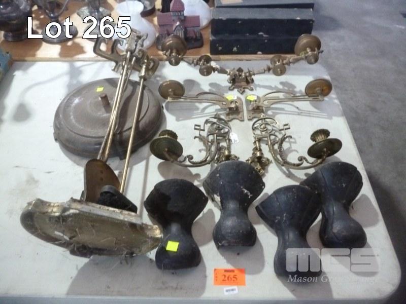3 x SCONE PAIRS, CAST IRON BATHTUB LEGS & FIRE SET