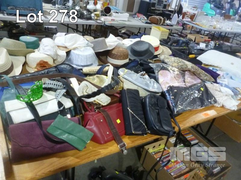 ASSORTED BAGS, PURSES & DOILIES ETC - 1 TABLE.