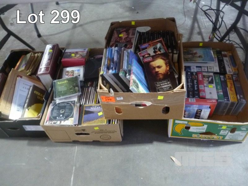 VHS TAPES, BOOKS & CD'S, 4 x CARTONS