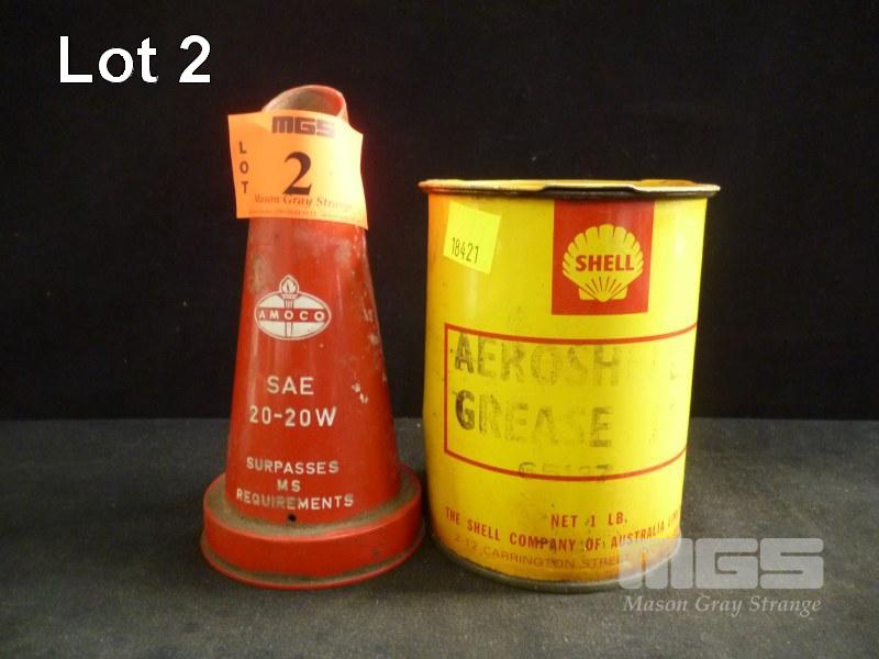 SHELL GREASE TIN & AMOCO PLASTIC OIL BOTTLE TOP