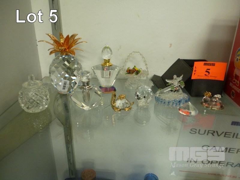 ASSORTED CRYSTAL & GLASS ORNAMENTS INCLUDING SWAROVSKI