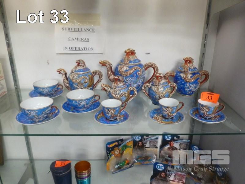 JAPANESE FINE CHINA TEA SET, HAND PAINTED, GEISHA HEAD TEACUP BASES