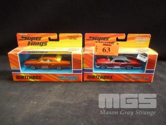 2 x MATCHBOX SUPER KINGS IN THERE BOXES, 1970 PLYMOUTH ROAD RUNNER, 1967 PONTIAC GTO