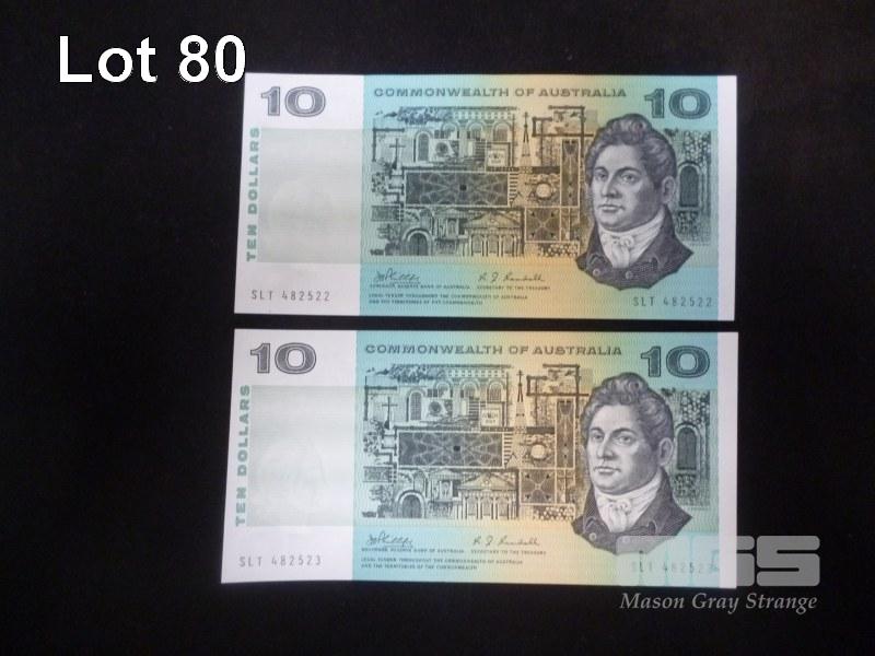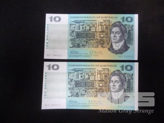 1968 CONSECUTIVE PAIR OF 10 DOLLAR NOTES PHILLIPS RANDALL HIGH GRADE