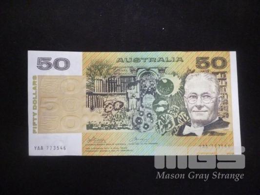 1973 50 DOLLAR NOTE "1ST PREFIX YAA" PHILLIPS WHEELER APPEARS UNC