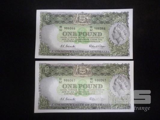 1960 2 x 1 POUND NOTE CONSECUTIVE X RARE COIN COMPANY UNC