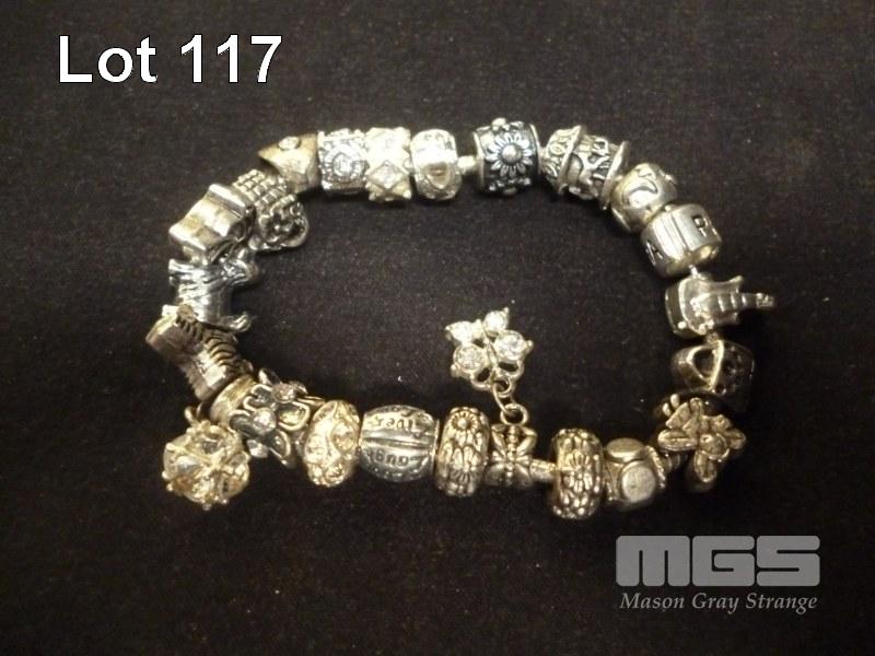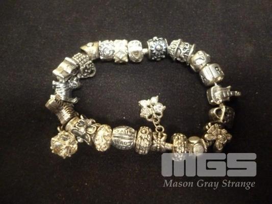 STERLING SILVER PANDORA BRACELET, WITH CHARMS