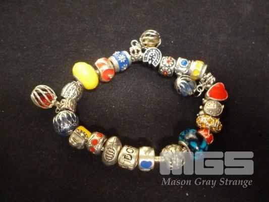 STERLING SILVER PANDORA BRACELET, WITH CHARMS