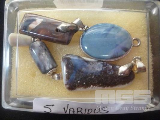 5 X ASSORTED SOLID OPAL PENDANTS, STERLING SILVER CLASPS