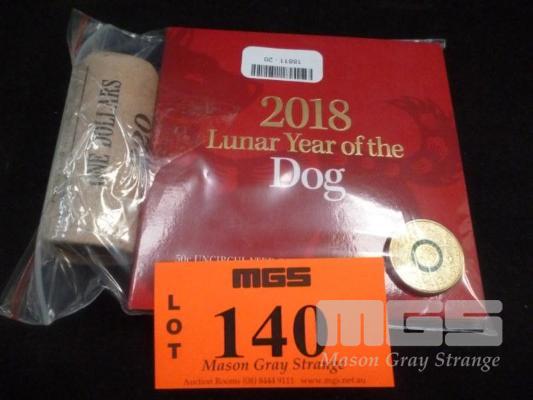 COLOURED $2 COINS, INCLUDING LEST WE FORGOT ETERNAL FLAME, 2018 LUNAR YEAR OF THE DAY 50 CENT COIN & 1984 RAM MINT ROLL $1 COINS