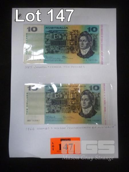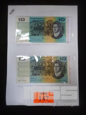 COMMONWEALTH OF AUSTRALIA 1966 $10 BANKNOTE, COMBS/WILSON SBD 103987 & AUSTRALIA $10 BANKNOTE, JOHNSTON/FRASER URN 505336