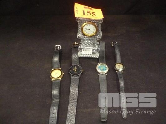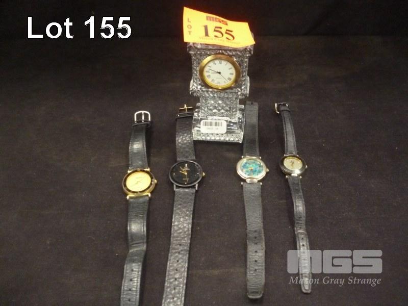 4 x ASSORTED WRISTWATCHES & SMALL GLASS MANTLE CLOCK