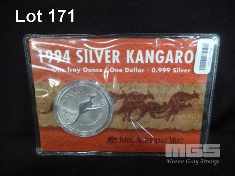 1993 1 TROY OZ FINE SILVER KANGAROO COIN UNC