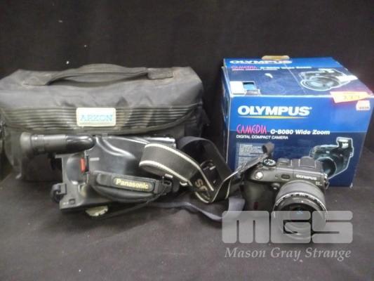 OLYMPUS C-8080 DIGITAL CAMERA & PANASONIC NV-R10 MOVIE CAMERA