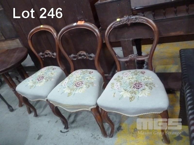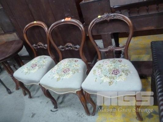 3 x MAHOGANY, BALLOON BACK DINING CHAIRS, TAPESTRY SEATS