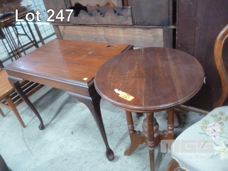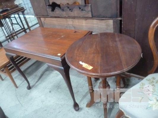 MAHOGANY SIDE TABLE, QUEEN ANNE LEGS, WITH MAHOGANY ROUND OCCASIONAL TABLE