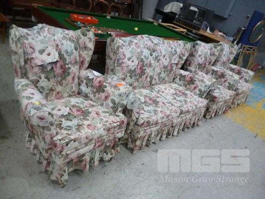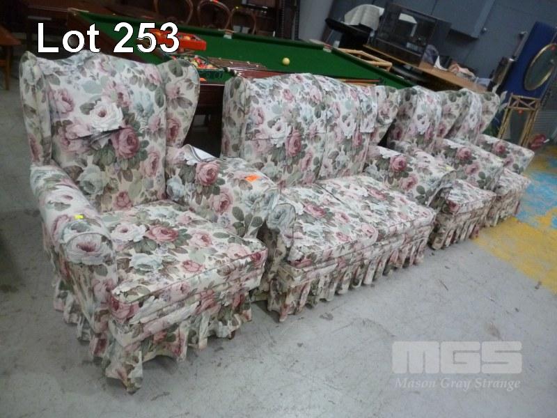 FLORAL FABRIC 4 PIECE LOUNGE SUITE, ROLL ARM, WING BACK, 2 SEATER & 3 x SINGLES