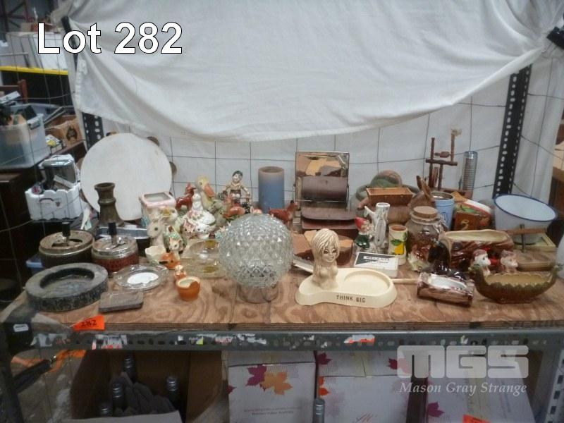 ASSORTED ORNAMENTS, ASHTRAYS, MIRROR ETC