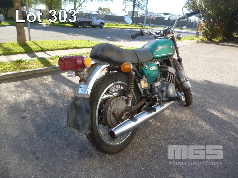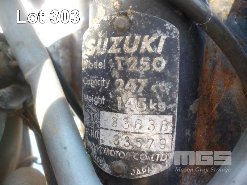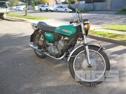 1971 SUZUKI T250 MOTORBIKE ODO: 28479 INDICATED 247CC, 6 SPEED PETROL, GREEN, 1 SEAT, ROAD BIKE, NUMBER PLATE REQUIRED, ENGINE NO. T25033638, FRAME NO. 33579, ORIGINAL ENGINE, TWIN EXHAUST, KICKSTART, SINGLE OWNER (NO PAPERS, NO KEYS, NO OWNER'S MANUAL, NO SERVICE BOOKS)