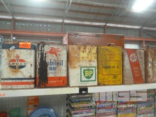 6 x PETRONALIA TINS INCLUDING CALTEX, BP, MOBIL OIL, SHELL, AMOCO & GARGOYLE