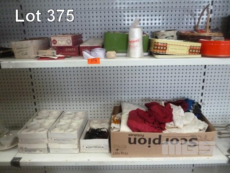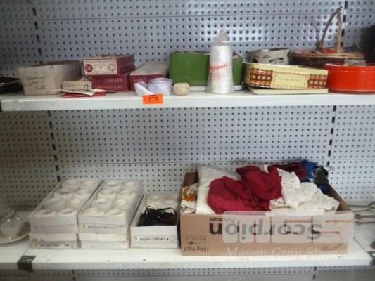 ASSORTED SEWING SUPPLIES, COTTONS ETC 2 X SHELVES