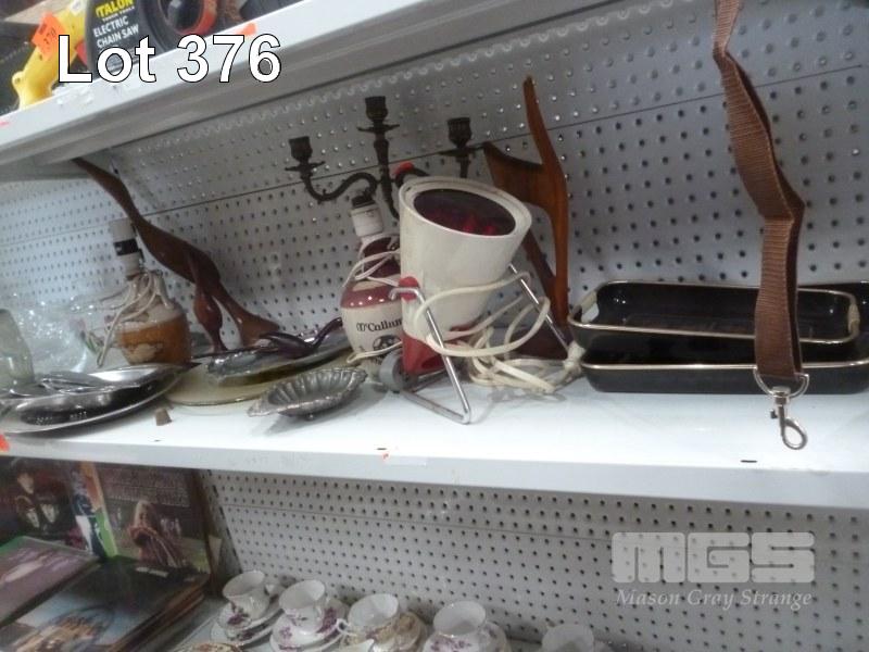 HEAT LAMP, CANDELABRA, WHISKY BOTTLE LAMP ETC