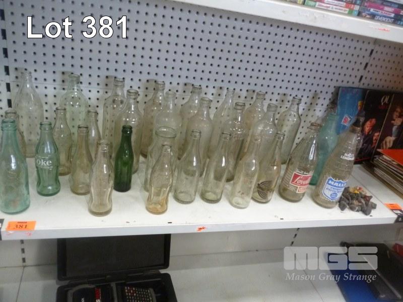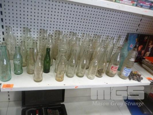 ASSORTED BOTTLES INC LOVELLS, HALLS, SCHWEPPES, COKE, WOODROOFE, COTTEES, ETC