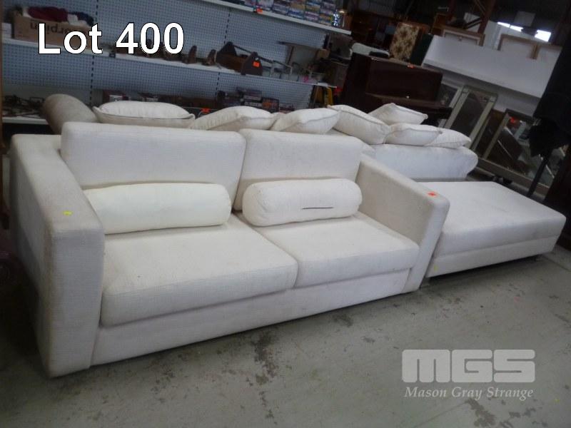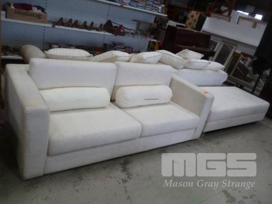 BEIGE FABRIC 2.5 SEATER LOUNGE, WITH MATCHING LONG OTTOMAN