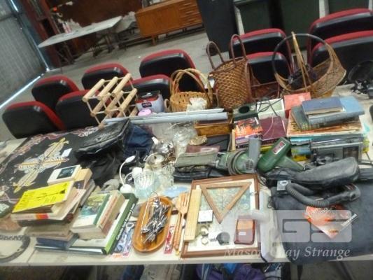 ASSORTED HOMEWARES, FILM CAMERAS, WICKER BASKETS, BOOKS ETC (1 x TABLE)