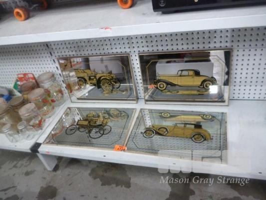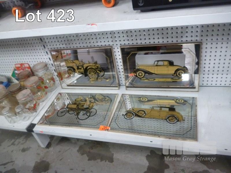 SET 4 x CAR BAR MIRRORS INCLUDING STANLEY 1899 MERCEDES BENZ 'K' 1926, FIAT 1903, CADILLAC 1931