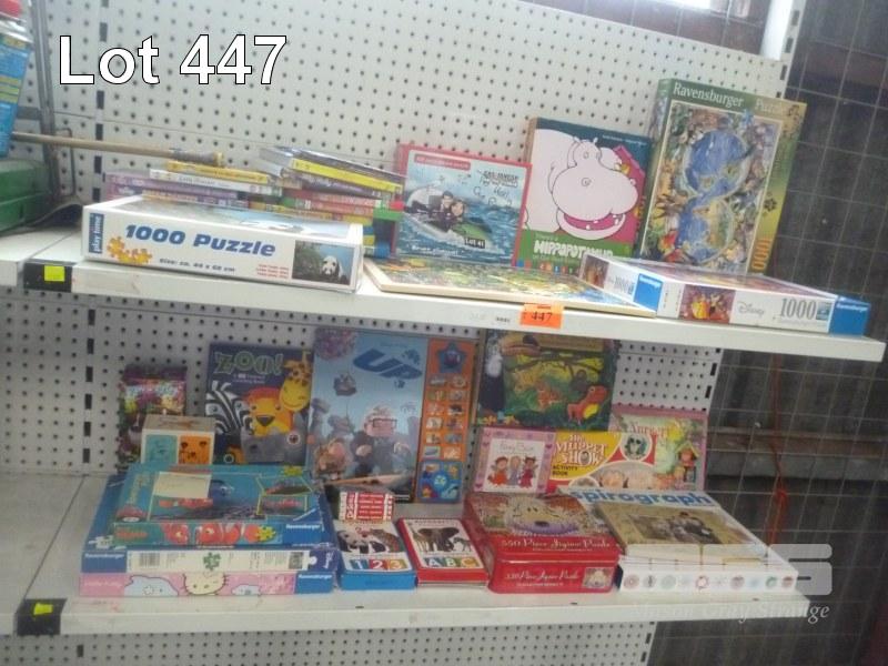 CHILDREN'S DVD'S, BOOKS, PUZZLES ETC (2 x SHELVES)