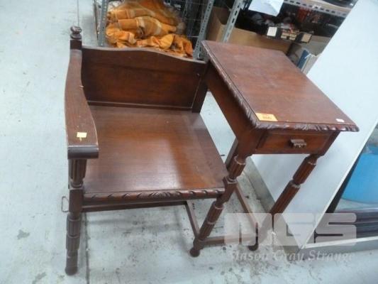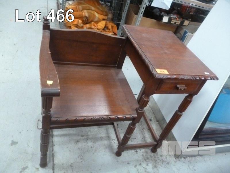 OAK SEATED PHONE TABLE WITH SINGLE DRAWER STRETCHER BASE, PIE CRUST EDGING & CARVED LEGS