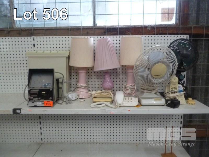ASSORTED TABLE LAMPS, DESK FANS, TELEPHONES & 8mm FILM EDITOR