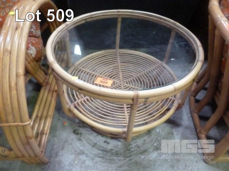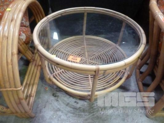 CANE ROUND COFFEE TABLE, GLASS TOP