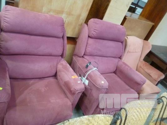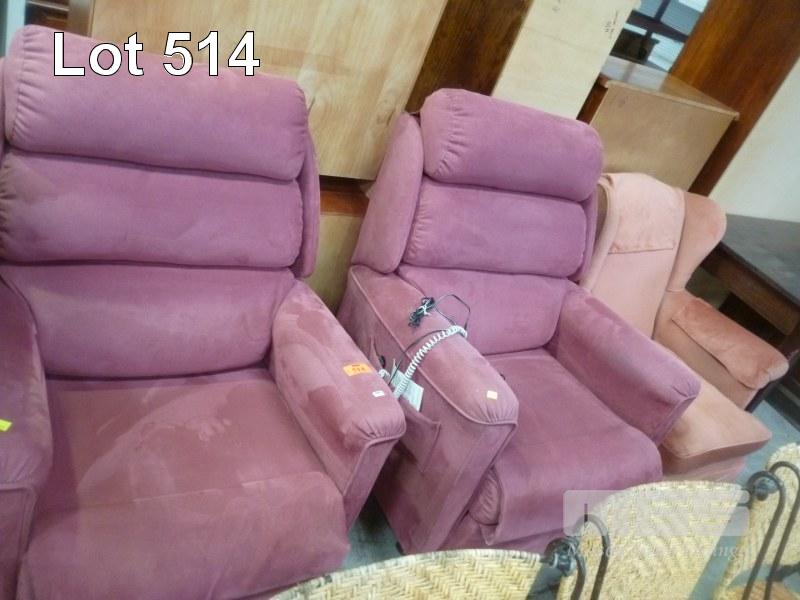 PINK FABRICC LIFT CHAIR, PINK FABRIC RECLINER & APRICOT FABRIC ARMCHAIR, WING BACK