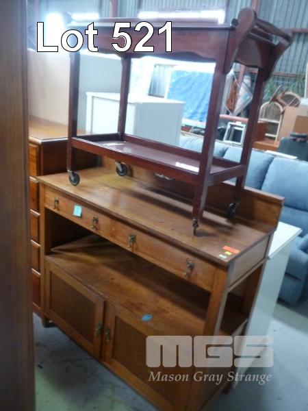 OAK SIDEBOARD, 2 DOOR/DRAWER, MIDDLE SHELF & TRAY MOBILE