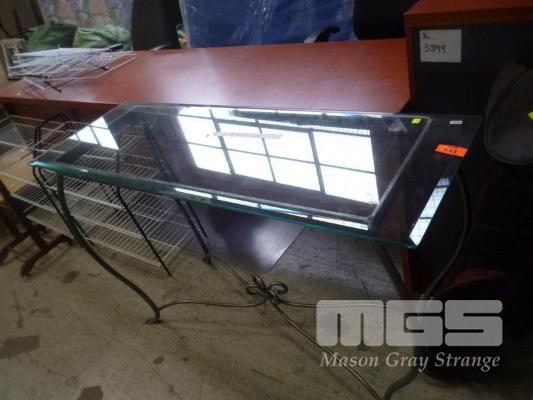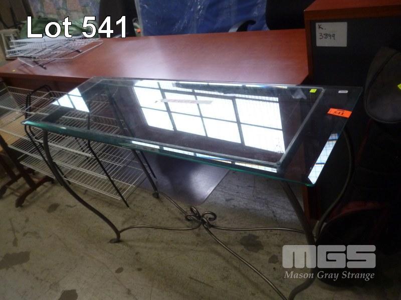RECTANGULAR SIDE TABLE, WROUGHT IRON FRAME, GLASS TOP