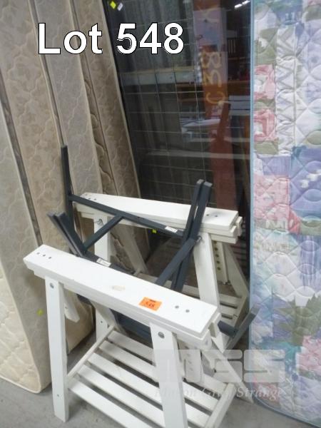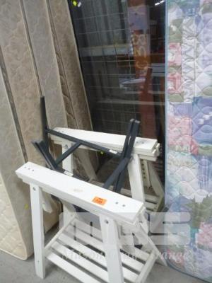 TRESTLE DINING TABLE, TIMBER LEGS, GLASS TOP