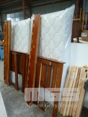 PAIR PINE SINGLE BEDS, TIMBER SLAT, WITH MATTRESSES