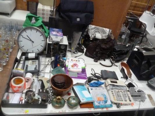 ASSORTED OFFICE STATIONERY, HANDBAGS ETC (1 x TABLE)