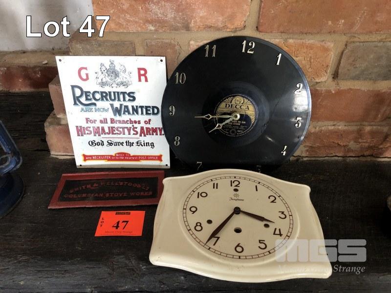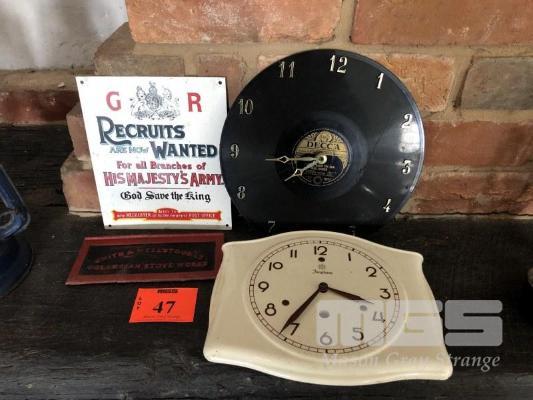 2 x CLOCKS, GR RECRUITMENT SIGN, MACHINE PLAQUE
