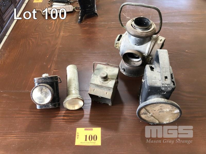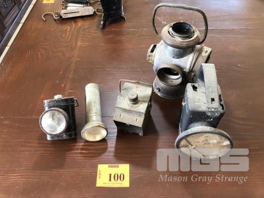3 x ANTIQUE LANTERNS & 2 x EARLY TORCHES