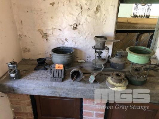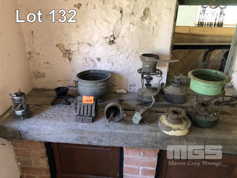 4 x KERO STOVES, HAND GENERATOR, FOOD GRINDER & BRASS POT
