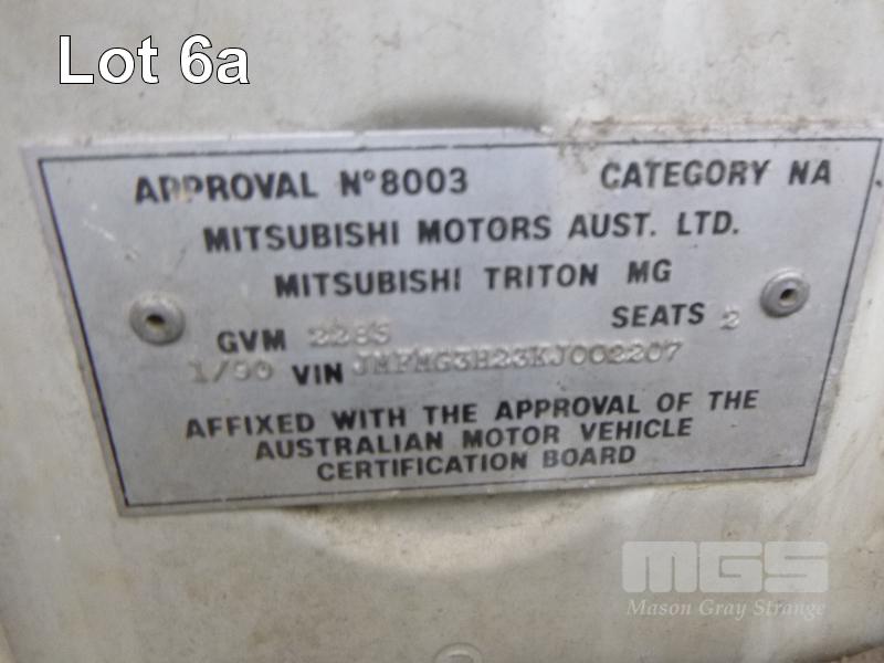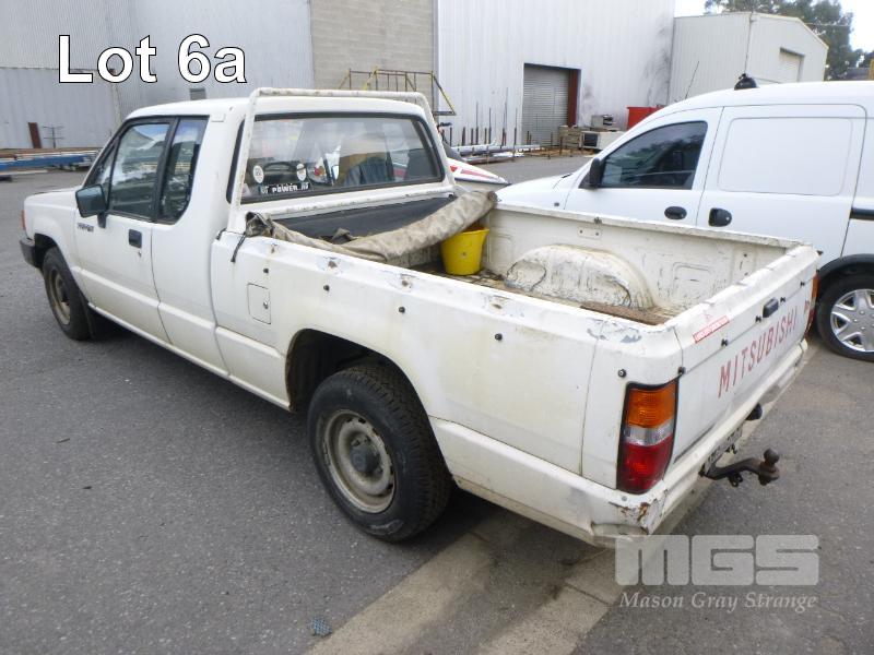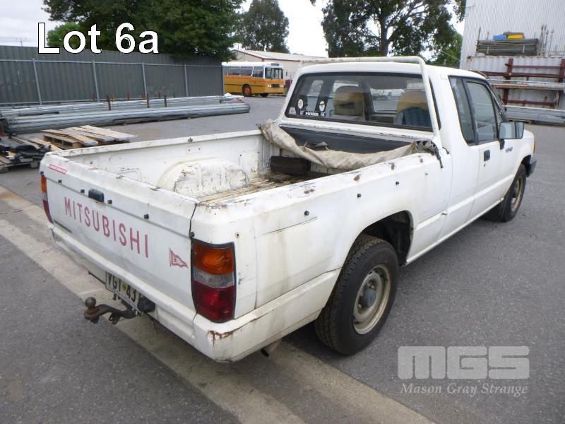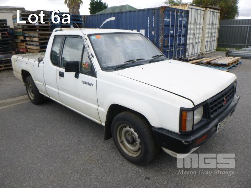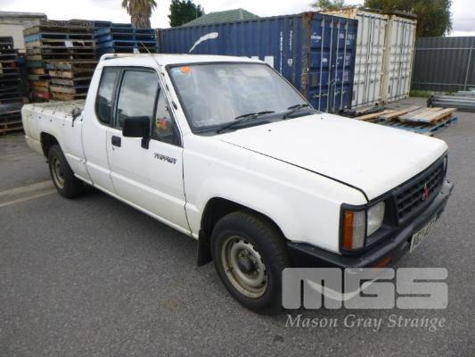 1990 MITSUBISHI TRITON MG SINGLE CAB UTILITY REG: VGT 437 (SA) VIN: JMFMG3H23KJ002207 ENG: 4G54A07816 ODO: 262,412kms SHOWING 2.6 LITRE, 4 CYLINDER, 5 SPEED SPEED MANUAL TRANSMISSION, PETROL, WHITE DUCO, REAR WHEEL DRIVE AIR CON, TOW BAR (WITH PAPERS) CONDITION: - ** NOT RUNNING **